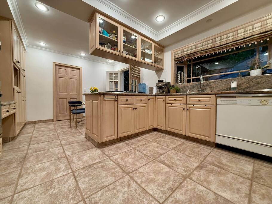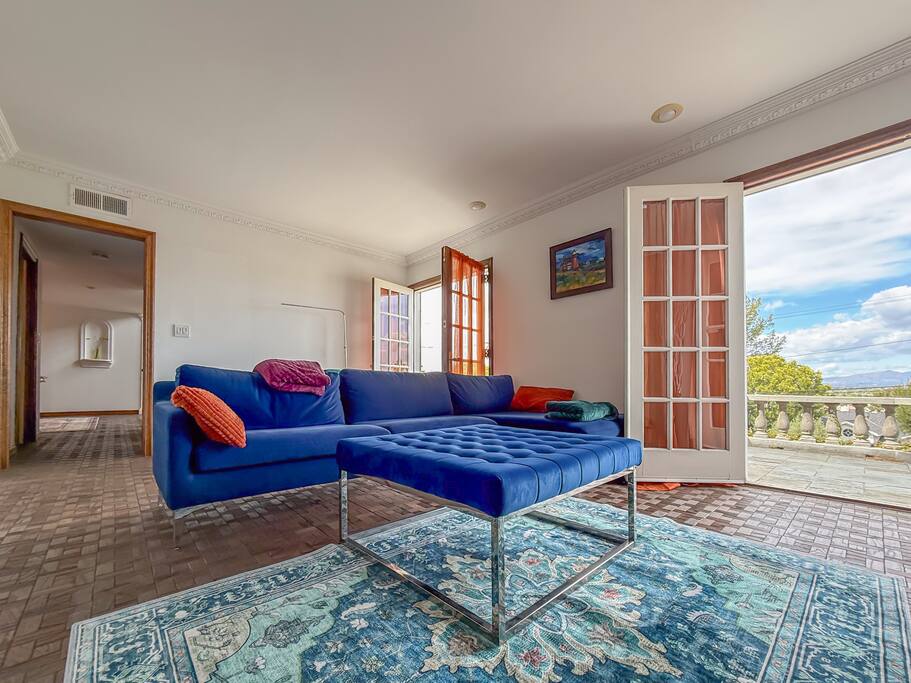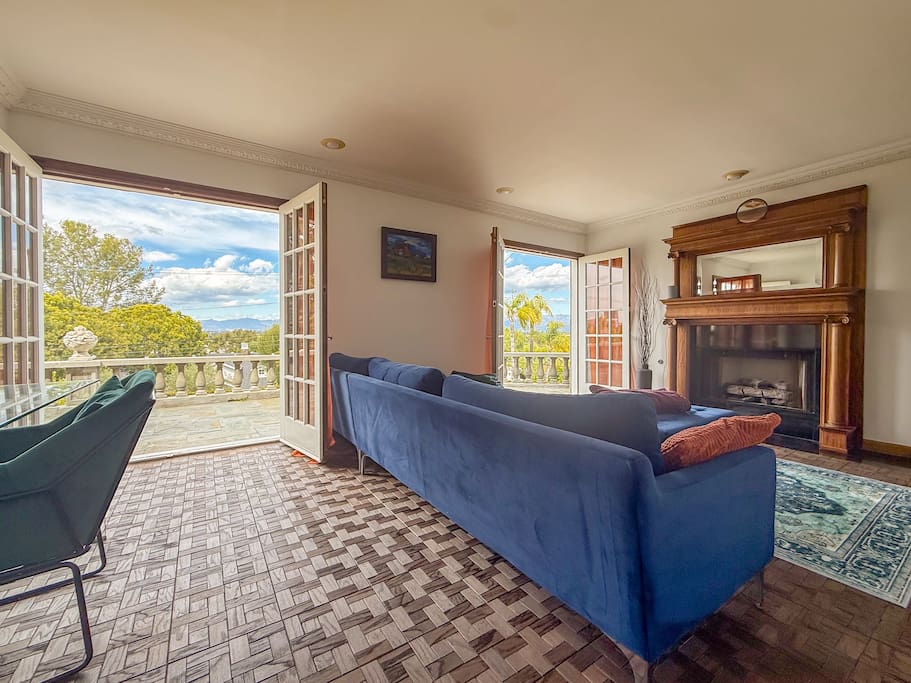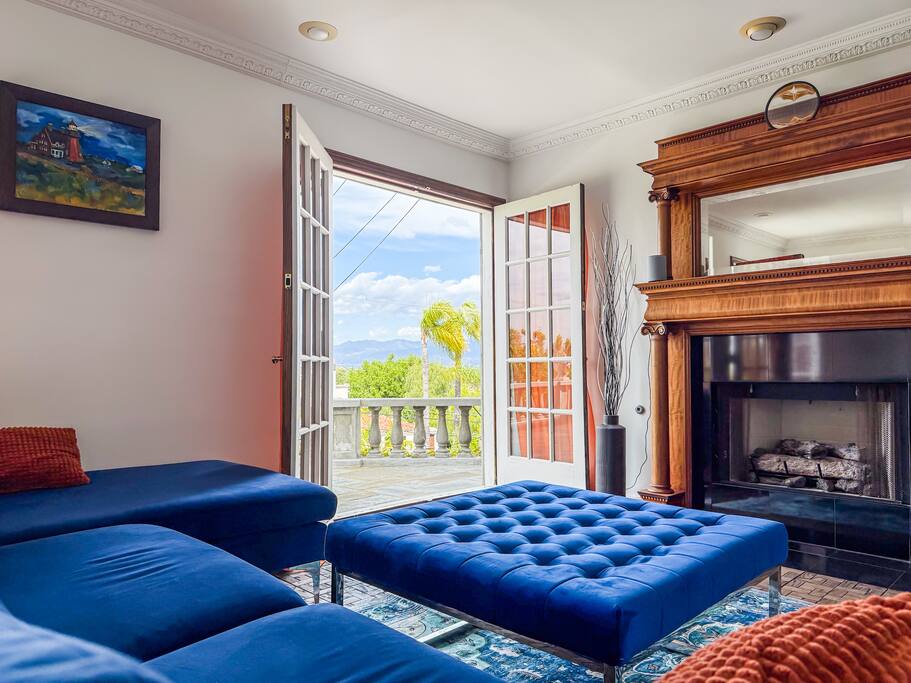 Step through carved wooden doors into a bright entry hall where sunlight pours down the staircase and leads you to a velvet-sofa lounge with a 75-inch 4K TV, immersive sound-bar, PS5 and Xbox Series X. French doors frame sweeping valley views that glow at sunset. The fully equipped kitchen - double wall ovens, Breville espresso machine, pour-over kit, high-end toaster, extensive spice rack, and cabinets stocked with cookware, wine glasses and tableware - opens to an extendable dining table that seats twelve inside or out on the terrace. A nearby glass workstation doubles as a kids’ art table, while shelves brim with Jenga, Catan, Monopoly and more for game night. Upstairs, the Japanese-inspired king suite offers a low platform bed, cozy fireplace, oversized soaking tub and rain shower. Throw open the Juliet doors for fresh air and mountain vistas. A plush California-king room, a jewel-toned queen room with blackout drapes, and a twin-bed/ergonomic office with a sit-stand desk, 49-inch monitor and laser printer complete the sleeping quarters. Two full baths and two convenient half baths come stocked with hotel-style touches - organic toiletries, cotton pads, cotton swabs and shower caps. Alexa voice control, gig-speed Wi-Fi and dual Nest thermostats weave smart-home comfort throughout. Outside, an oval salt-water pool (3-6 ft) awaits with four cushioned loungers, fringed umbrellas and a chest of floats and noodles. Mid-way to the roof, a secluded teak deck wraps around a fire-table, while the top-level gazebo seats twelve behind mosquito nets and curtains - perfect for sunset cocktails under twinkle lights. A four-burner gas grill stands ready for alfresco feasts. Parking is effortless with a two-car garage, driveway space and plentiful free street parking. Vista Villa blends Spanish-style elegance, modern tech and resort-level leisure into one unforgettable hillside retreat.