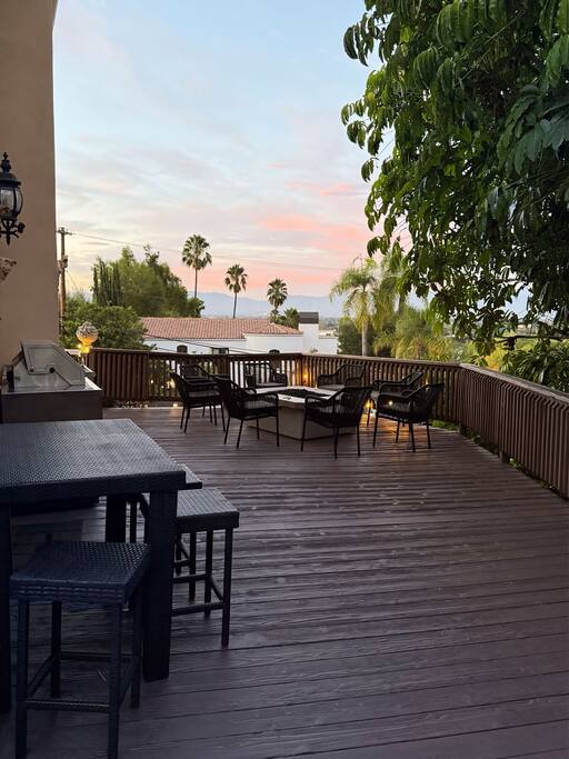 Vista Villa sits in a quiet, family-friendly hillside neighborhood. Please enjoy the home as you would your own vacation retreat and help us keep good relations with our neighbors. ⸻ 🔊 Noise & City Rules • Los Angeles bans outdoor loudspeakers and large parties at short-term rentals. • Quiet hours are 10 PM – 7 AM; voices and music should stay at conversation level after 10 PM. • Maximum overnight occupancy: 10 guests (city permit). 🚗 Parking • Garage: fits 2 cars; please park inside to keep the shared driveway clear. • Oversize vehicles or additional cars must use free street parking - ample space is usually available. • Do not block the driveway or neighbor access at any time. 🐾 Pets • Well-behaved pets are welcome with advance notice (tell us number and type when booking). • Pets stay on the first floor only; bring them off-property for potty breaks - our front and back decks aren’t designed for this. • Guests must clean up pet waste and excess fur; a pet fee covers the extra deep-clean required after checkout. 🚭 Smoking / Vaping • Smoke-free home - no smoking or vaping indoors or on decks per city ordinance. 🎥 Security Cameras • Exterior-only cameras cover the front entry, driveway, pool, and backyard for guest safety. No audio recording and no indoor cameras. 🛠️ Damage or Malfunction • If something breaks or stops working, let us know right away so we can repair or replace it promptly - accidents happen! 🤖 Smart-Home Comfort • Dual Nest thermostats, Alexa voice controls, and gig-speed Wi-Fi provide seamless comfort and fast connectivity. 🧑🦽 Accessibility • All bedrooms are on the second floor via a wide staircase; the home may not suit guests with limited mobility. 🌿 Gardening & Pool Service • Outdoor maintenance crews visit once a week; service is quick and should not disturb your stay. 🗺️ Local Assistance • Need restaurant tips, hiking ideas, grocery delivery, or a late checkout? Message us - we are happy to curate the perfect stay. Thank you for respecting these guidelines and helping keep Vista Villa a delightful escape for every guest who follows.